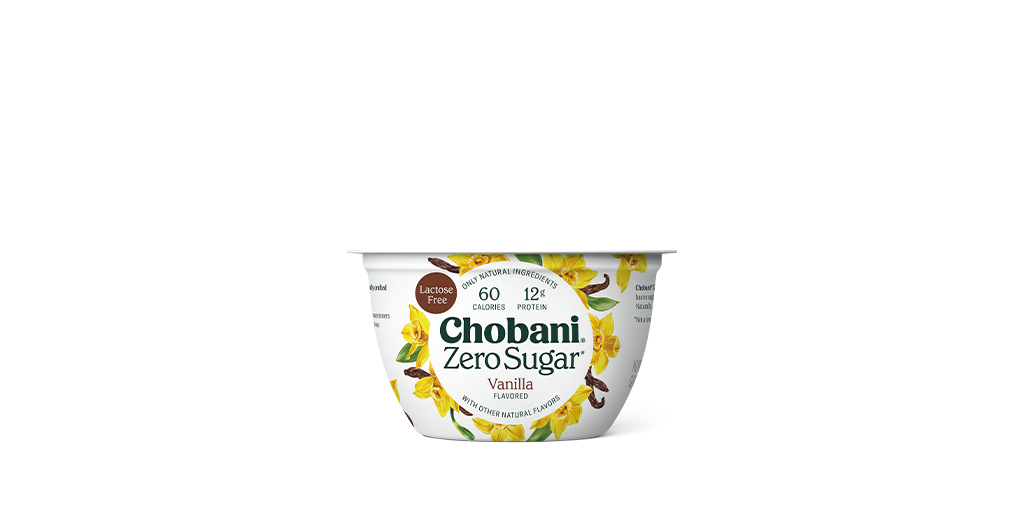 Zero-sugar nonfat Greek yogurt. 60 cal, 0g sugar per 5.3 oz. Sweetened with allulose, stevia leaf extract (Reb M), and monk fruit extract. No lactose. 6 live and active cultures. No artificial sweeteners or preservatives.