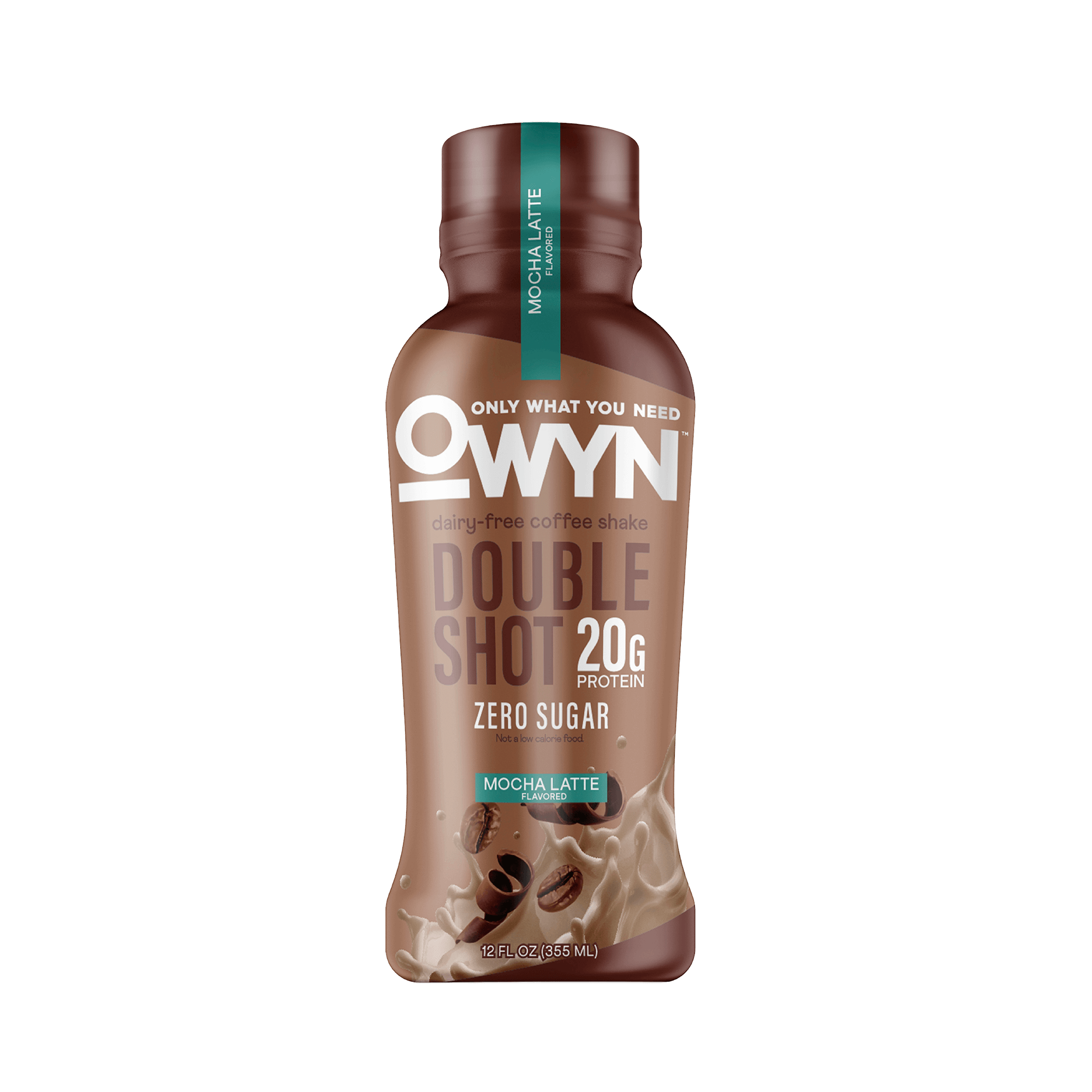 Plant-based mocha latte coffee shake with pea, organic pumpkin seed, and flax protein plus cold brew coffee extract and cocoa. 20g protein, 0g sugar, 0g net carbs, 180mg caffeine per 12 fl oz bottle. Top-9 allergen friendly. Sweetened with monk fruit extract.