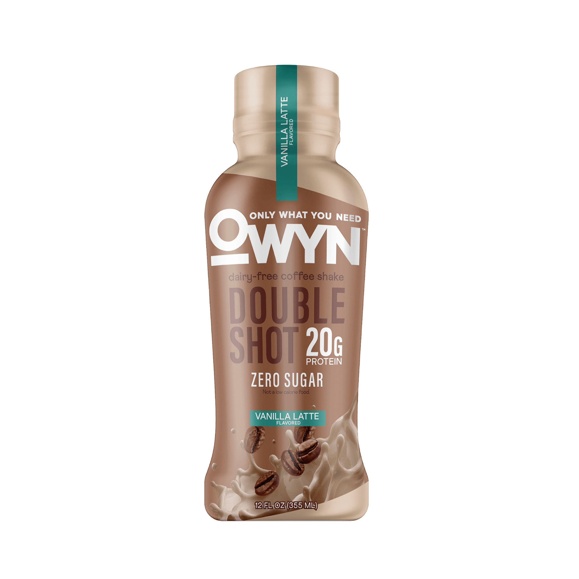 Plant-based vanilla latte coffee shake with pea, organic pumpkin seed, and flax protein plus cold brew coffee extract. 20g protein, 0g sugar, 0g net carbs, 180mg caffeine per 12 fl oz bottle. Top-9 allergen friendly. Sweetened with monk fruit extract.