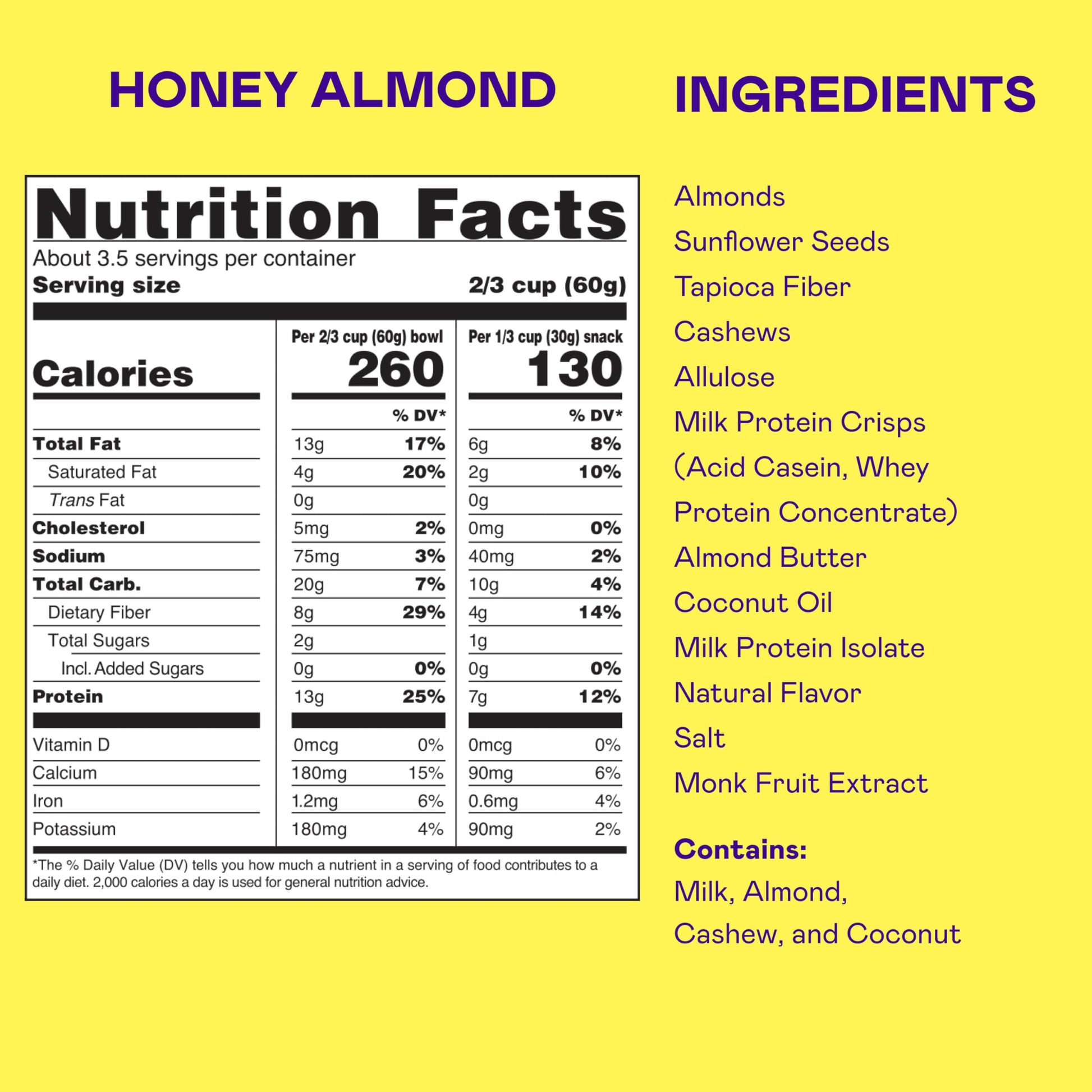 - Meet Magic Spoon: Magic Spoon granola looks and tastes like your favorite classic granolas, with 13 grams protein and 2 grams sugar. A great healthy breakfast! Includes 3x 8oz bags of Honey Almond and a spoon.