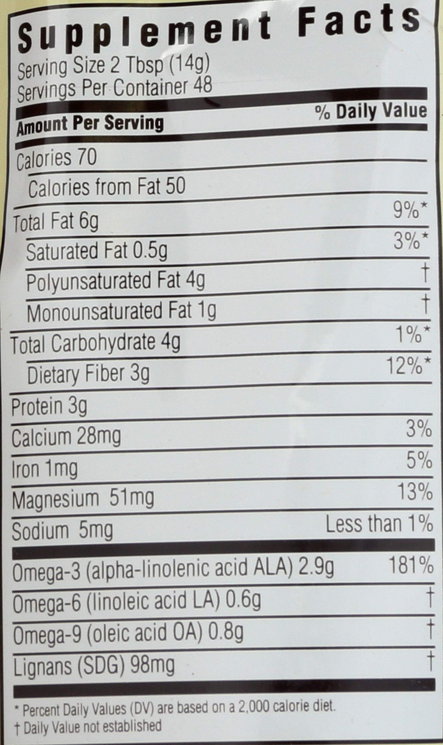 - 3 gram of dietary fiber per serving; 98 Milligrams of Lignans per serving